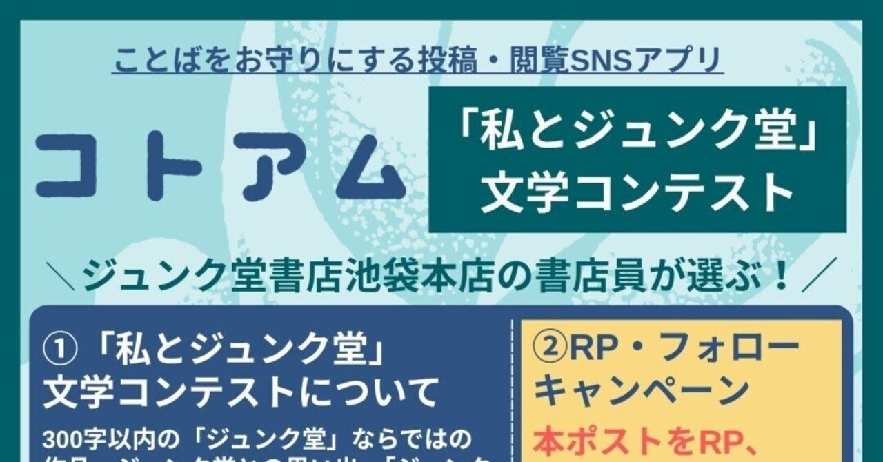 SNSアプリ・コトアムで開催される「私とジュンク堂 文学コンテスト」の情報を追加しました。