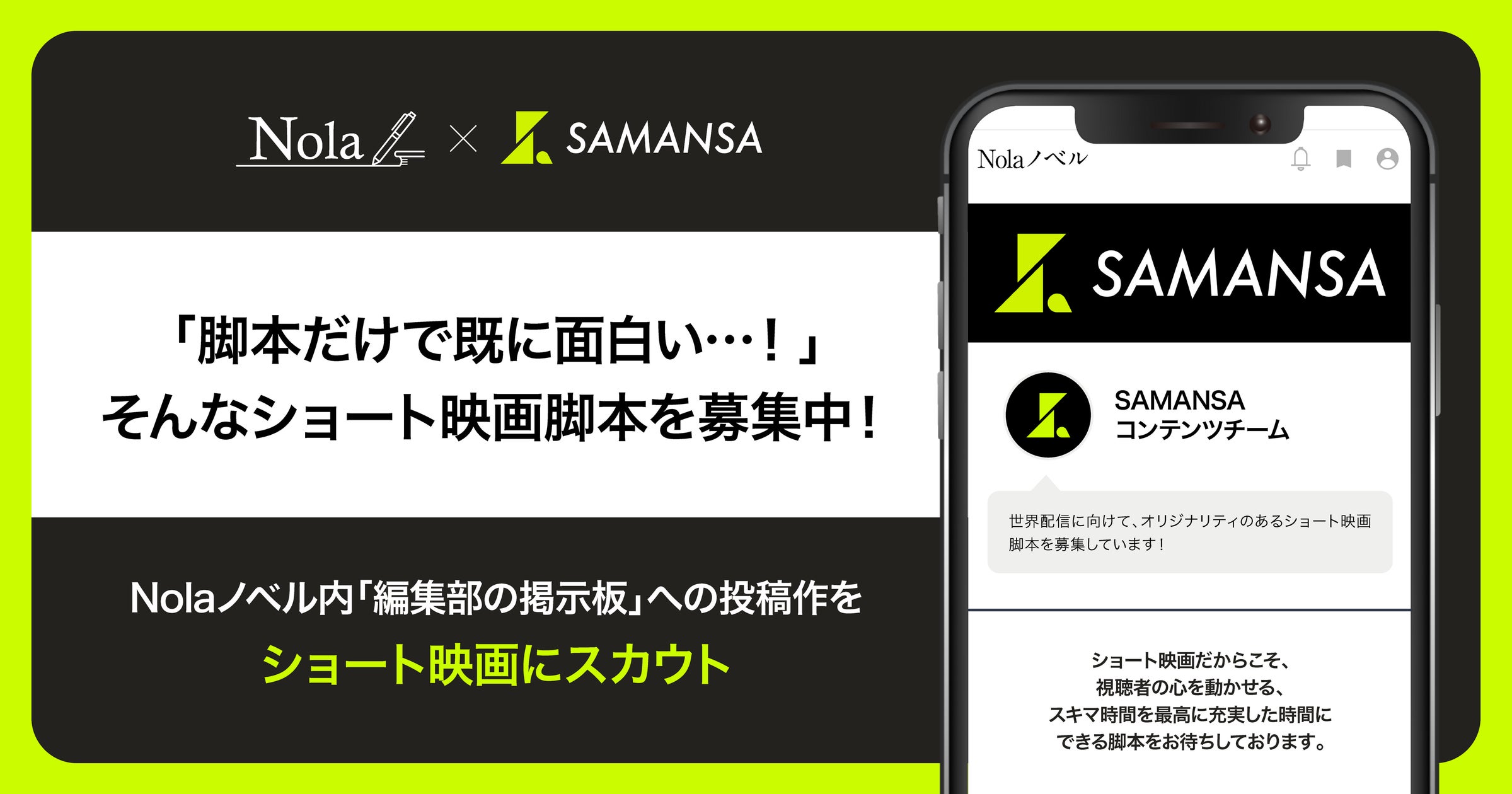 作家数60万人超・作品数250万超の創作プラットフォーム「Nola」、SAMANSAコンテンツチームとともに、“ショ…