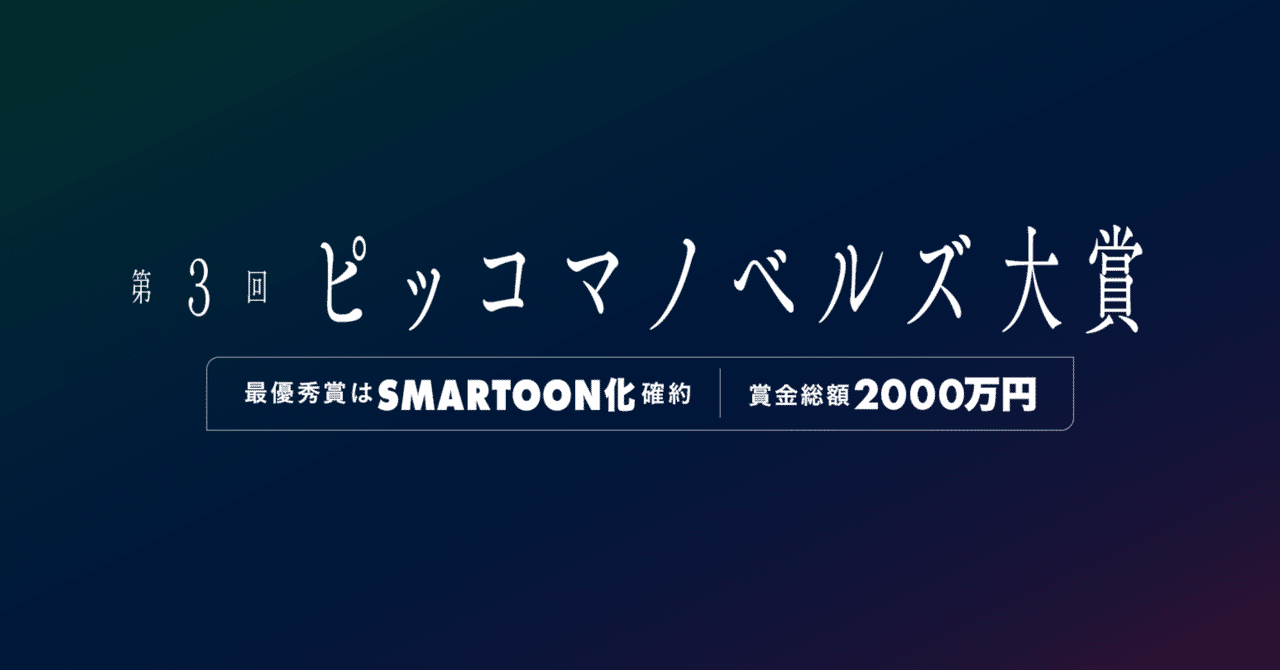 ピッコマ、賞金総額2,000万円・国内最大級のノベルコンテスト「第3回ピッコマノベルズ大賞」を開催。第1シーズンの募集も同時にスタート。年間最優秀賞は賞金1,000万円&SMARTOON®︎化確約!